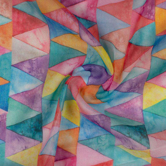 -10% offMulticolor Geometric Pattern Digital Print Chiffon Fabric Multicolor Geometric Pattern Digital Print Chiffon Fabric