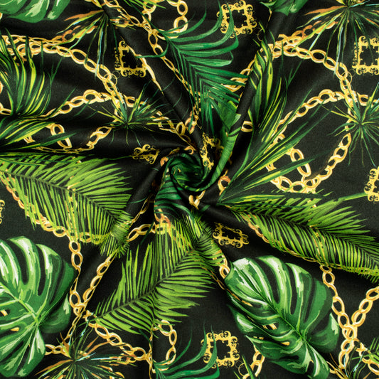 -20% offBlack And Green Chain Pattern Digital Print American Crepe Fabric Black And Green Chain Pattern Digital Print American Crepe Fabric