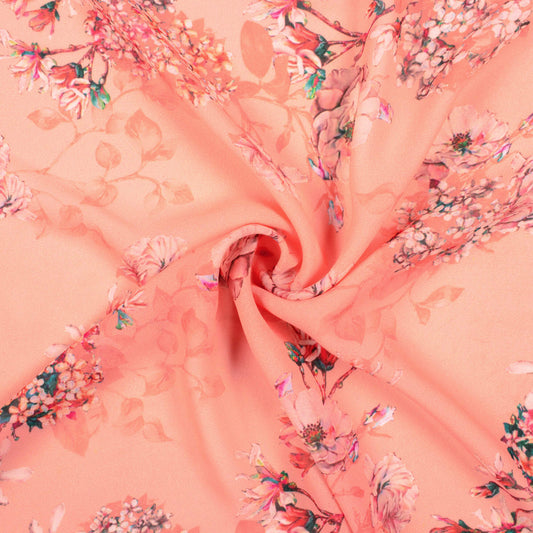 -10% offPeach And Teal Green Floral Pattern Digital Print Georgette Fabric Peach And Teal Green Floral Pattern Digital Print Georgette Fabric