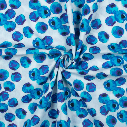 Anuska's Choice White And Blue Quirky Pattern Digital Print Cotton Cambric Fabric Anuska's Choice White And Blue Quirky Pattern Digital Print Cotton Cambric Fabric