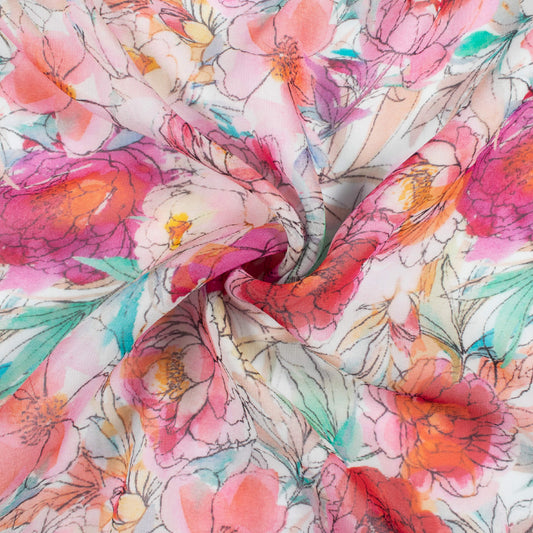 -9% offCream And Taffy Pink Floral Pattern Digital Print Viscose Muslin Fabric Cream And Taffy Pink Floral Pattern Digital Print Viscose Muslin Fabric