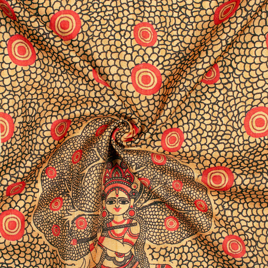 Tiger Orange And Red Kalamkrii Pattern Digital Print Bemberg Raw Silk Fabric Tiger Orange And Red Kalamkrii Pattern Digital Print Bemberg Raw Silk Fabric