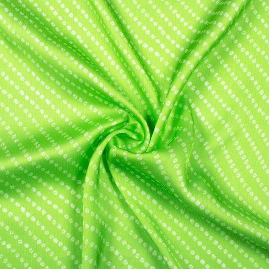 Liril Green And White Bandhanii Pattern Digital Print Chiffon Satin Fabric Liril Green And White Bandhanii Pattern Digital Print Chiffon Satin Fabric