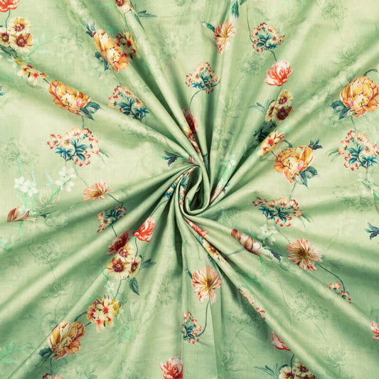 -10% offPistachio Green Floral Pattern Digital Print Cotton Cambric Fabric Pistachio Green Floral Pattern Digital Print Cotton Cambric Fabric