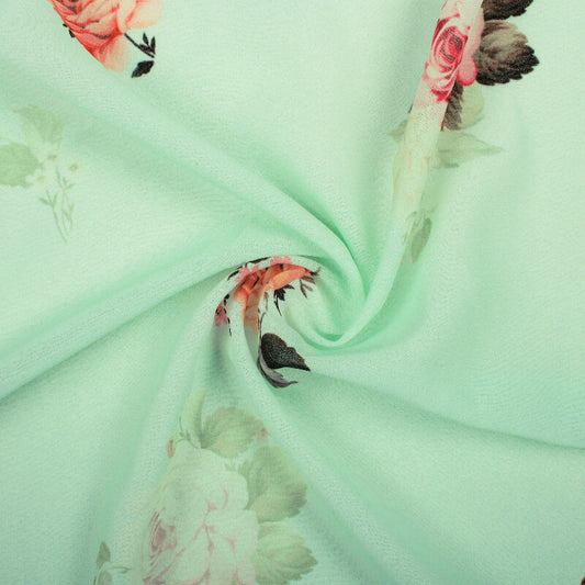 -10% offLight Pistachio Green And Pink Floral Pattern Digital Print Georgette Fabric Light Pistachio Green And Pink Floral Pattern Digital Print Georgette Fabric