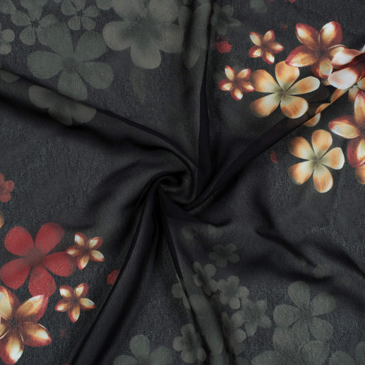 -10% offBlack And Peru Brown Floral Pattern Digital Print Georgette Fabric Black And Peru Brown Floral Pattern Digital Print Georgette Fabric