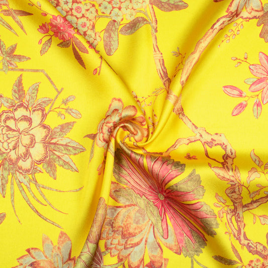 -10% offBumblebee Yellow And Pink Floral Pattern Digital Print Japan Satin Fabric Bumblebee Yellow And Pink Floral Pattern Digital Print Japan Satin Fabric
