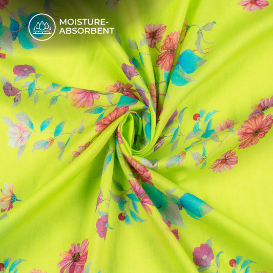 -11% offLime Green Floral Digital Print Pure Cotton Mulmul Fabric Lime Green Floral Digital Print Pure Cotton Mulmul Fabric