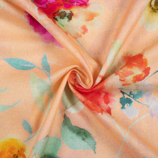 -10% offPastel Peach And Orange Floral Pattern Digital Print Cotton Cambric Fabric Pastel Peach And Orange Floral Pattern Digital Print Cotton Cambric Fabric