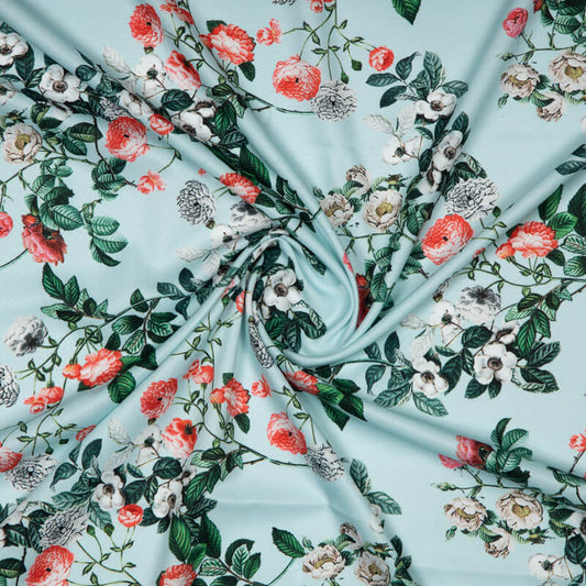 -10% offPastel Blue Floral Digital Print Georgette Satin Fabric Pastel Blue Floral Digital Print Georgette Satin Fabric