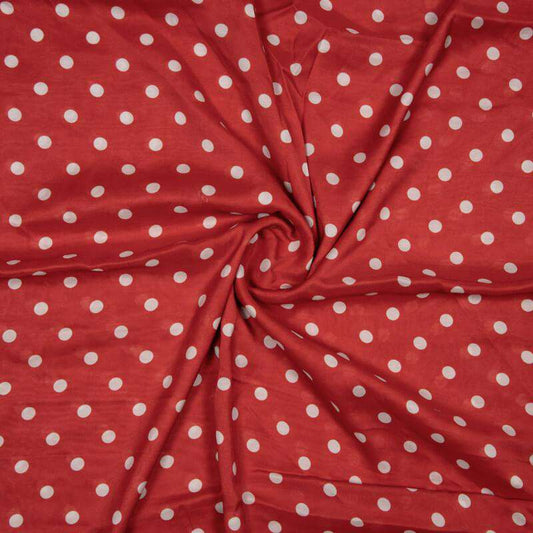 -9% offRed And White Polka Pattern Digital Print Viscose Muslin Fabric Red And White Polka Pattern Digital Print Viscose Muslin Fabric