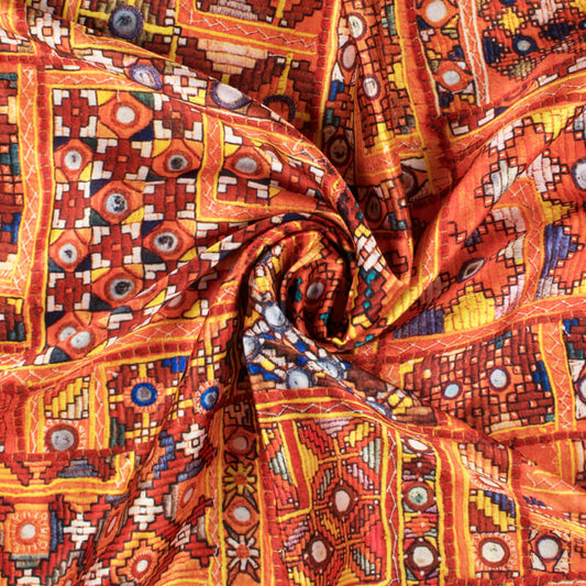 -10% offOrange Gamthee Pattern Digital Printed Japan Satin Fabric Orange Gamthee Pattern Digital Printed Japan Satin Fabric