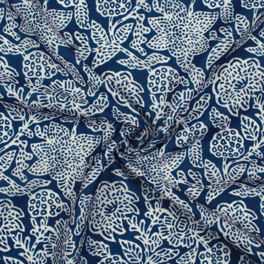 -10% offWhite And Navy Blue Floral Pattern Digital Printed Muslin Fabric White And Navy Blue Floral Pattern Digital Printed Muslin Fabric