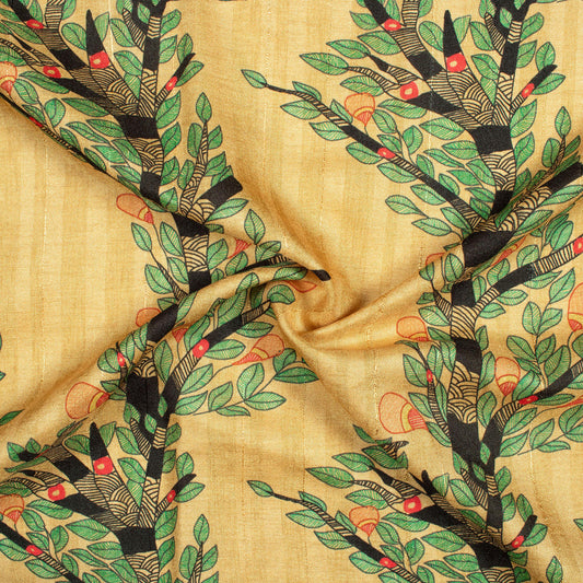 -9% offCream And Green Madhuvanii Pattern Digital Print Art Tusser Silk Fabric Cream And Green Madhuvanii Pattern Digital Print Art Tusser Silk Fabric