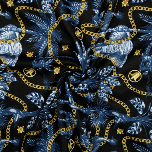 -20% offBlack And Royal Blue Chain Pattern Digital Print American Crepe Fabric Black And Royal Blue Chain Pattern Digital Print American Crepe Fabric