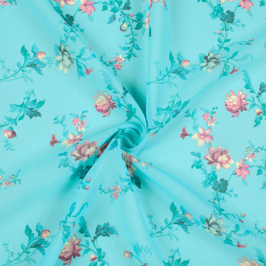 -10% offSky Blue And Pink Floral Pattern Digital Print Georgette Fabric Sky Blue And Pink Floral Pattern Digital Print Georgette Fabric