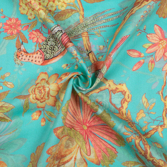 Powder Yellow And Laguna Yellow Floral Pattern Digital Print Poly Glazed Cotton Fabric Powder Yellow And Laguna Yellow Floral Pattern Digital Print Poly Glazed Cotton Fabric
