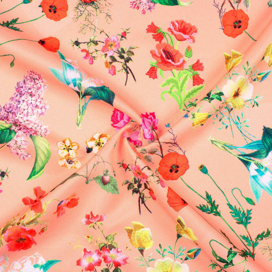 Peach And Green Floral Pattern Digital Print Ultra Premium Butter Crepe Fabric Peach And Green Floral Pattern Digital Print Ultra Premium Butter Crepe Fabric