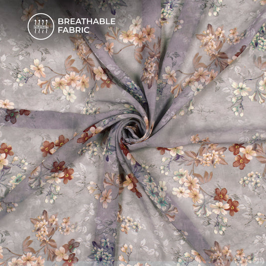 -10% offRefined Grey Floral Digital Print Lightweight Georgette Fabric Refined Grey Floral Digital Print Lightweight Georgette Fabric