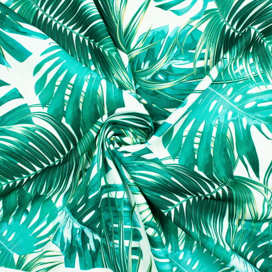 -20% offSnow White And Green Tropical Pattern Digital Print American Crepe Fabric Snow White And Green Tropical Pattern Digital Print American Crepe Fabric