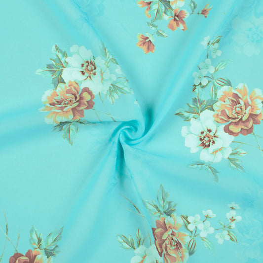 -10% offSky Blue And White Floral Pattern Digital Print Georgette Fabric Sky Blue And White Floral Pattern Digital Print Georgette Fabric