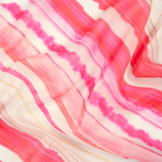 -10% offDark Pink And White Leheriya Pattern Digital Print Organza Satin Fabric Dark Pink And White Leheriya Pattern Digital Print Organza Satin Fabric