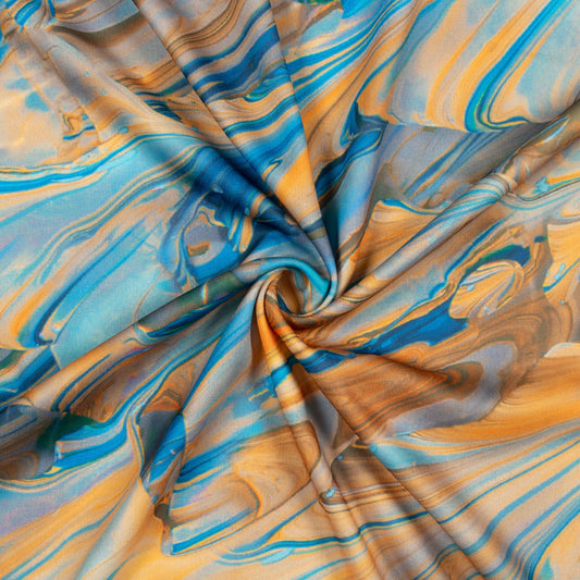 Olympic Blue And Orange Abstract Pattern Digital Print Lycra Fabric (Width 58 Inches) Olympic Blue And Orange Abstract Pattern Digital Print Lycra Fabric (Width 58 Inches)