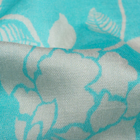 Sky Blue And Off White Floral Pattern Digital Print Viscose Chanderi Fabric Sky Blue And Off White Floral Pattern Digital Print Viscose Chanderi Fabric