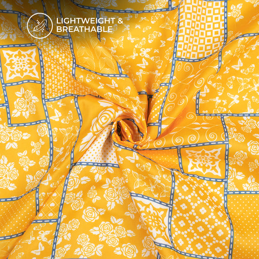 -9% offButter Yellow Geometrical Digital Print Poly Glazed Cotton Fabric Butter Yellow Geometrical Digital Print Poly Glazed Cotton Fabric