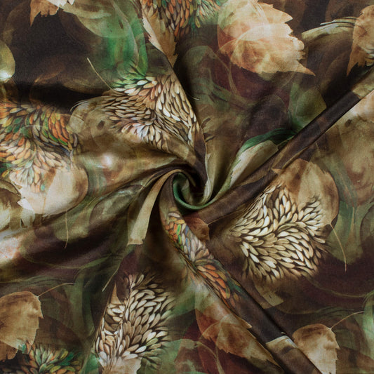 -7% offCoffee Brown And Basil Green Leaf Pattern Digital Print Crepe Silk Fabric Coffee Brown And Basil Green Leaf Pattern Digital Print Crepe Silk Fabric