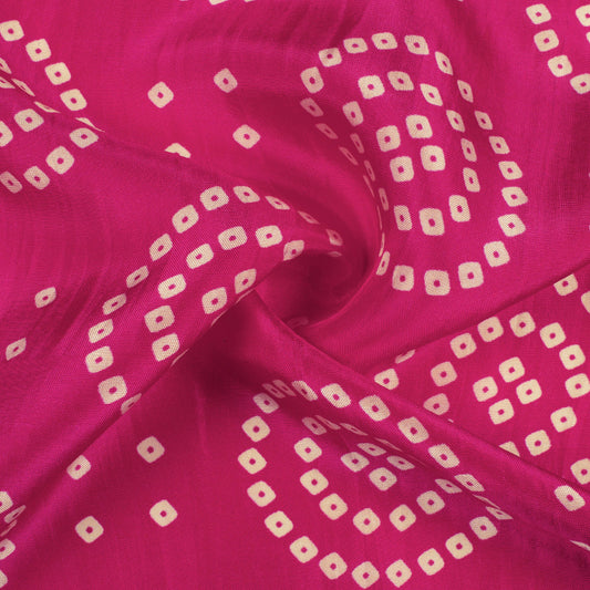 Magenta Pink And Cream Bandhanii Pattern Digital Print Viscose Uppada Silk Fabric Magenta Pink And Cream Bandhanii Pattern Digital Print Viscose Uppada Silk Fabric