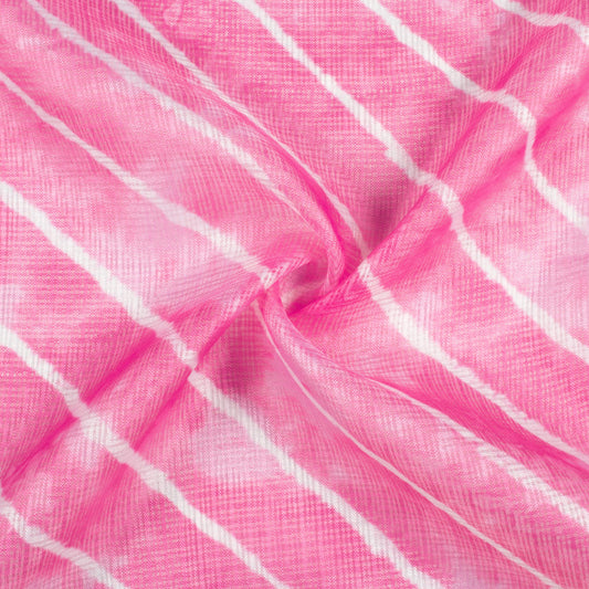 Taffy Pink And White Leheriya Pattern Digital Print Kota Doria Fabric Taffy Pink And White Leheriya Pattern Digital Print Kota Doria Fabric