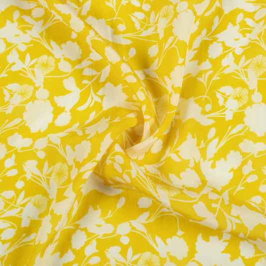 Bumblebee Yellow And White Floral Pattern Digital Print Viscose Natural Crepe Fabric Bumblebee Yellow And White Floral Pattern Digital Print Viscose Natural Crepe Fabric
