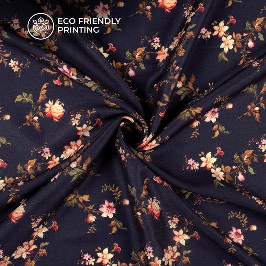 -20% offIndiigo Blue And Yellow Floral Pattern Digital Print Poly Micro Crepe Fabric Indiigo Blue And Yellow Floral Pattern Digital Print Poly Micro Crepe Fabric
