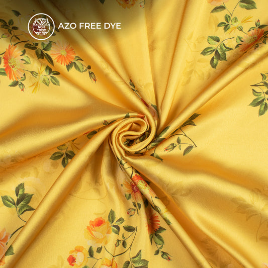 -10% offButter yellow Floral Digital Print Japan Satin Fabric Butter yellow Floral Digital Print Japan Satin Fabric