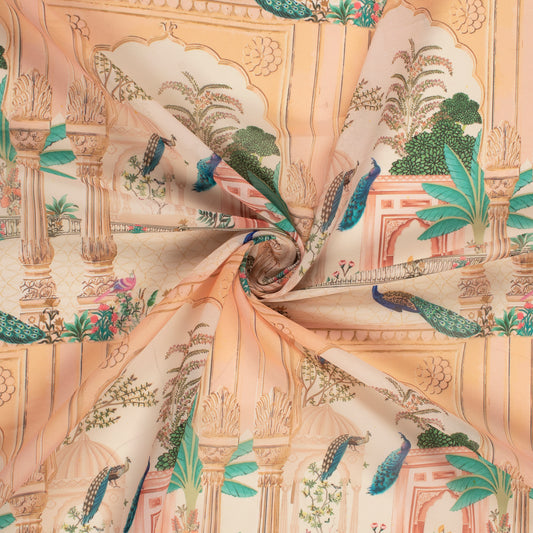 -30% offExclusive Peach Madhuvanii Digital Print Georgette Fabric Exclusive Peach Madhuvanii Digital Print Georgette Fabric