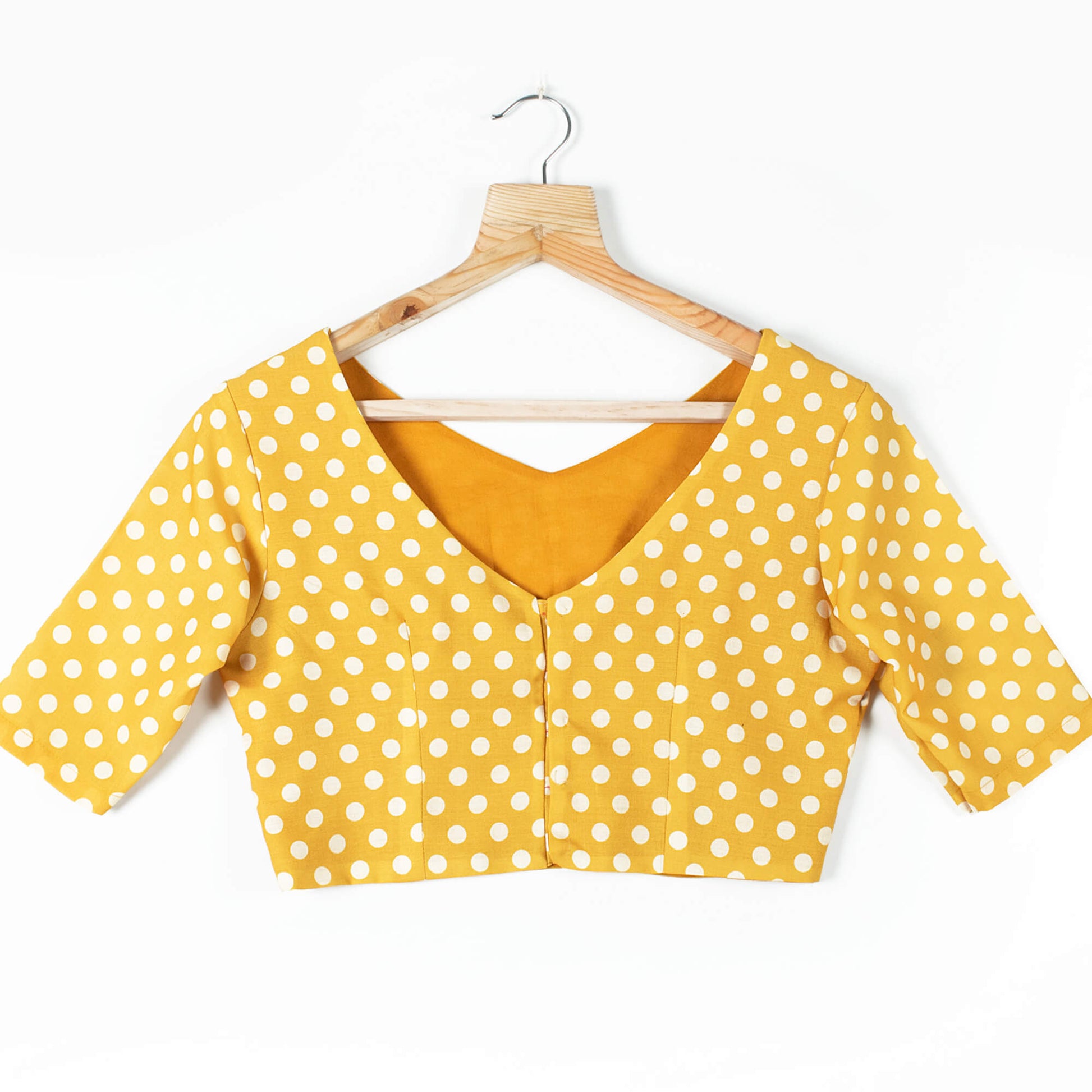 Digital Print Rayon blouse with polka dots design looks versatile and mesmerizing. It features half sleeves, V-neckline, and back hook closure. This fabric has good drapability. Match this blouse with gorgeous sarees and redefine your personality.