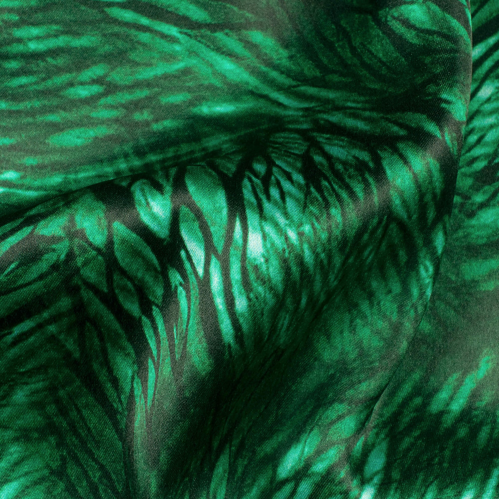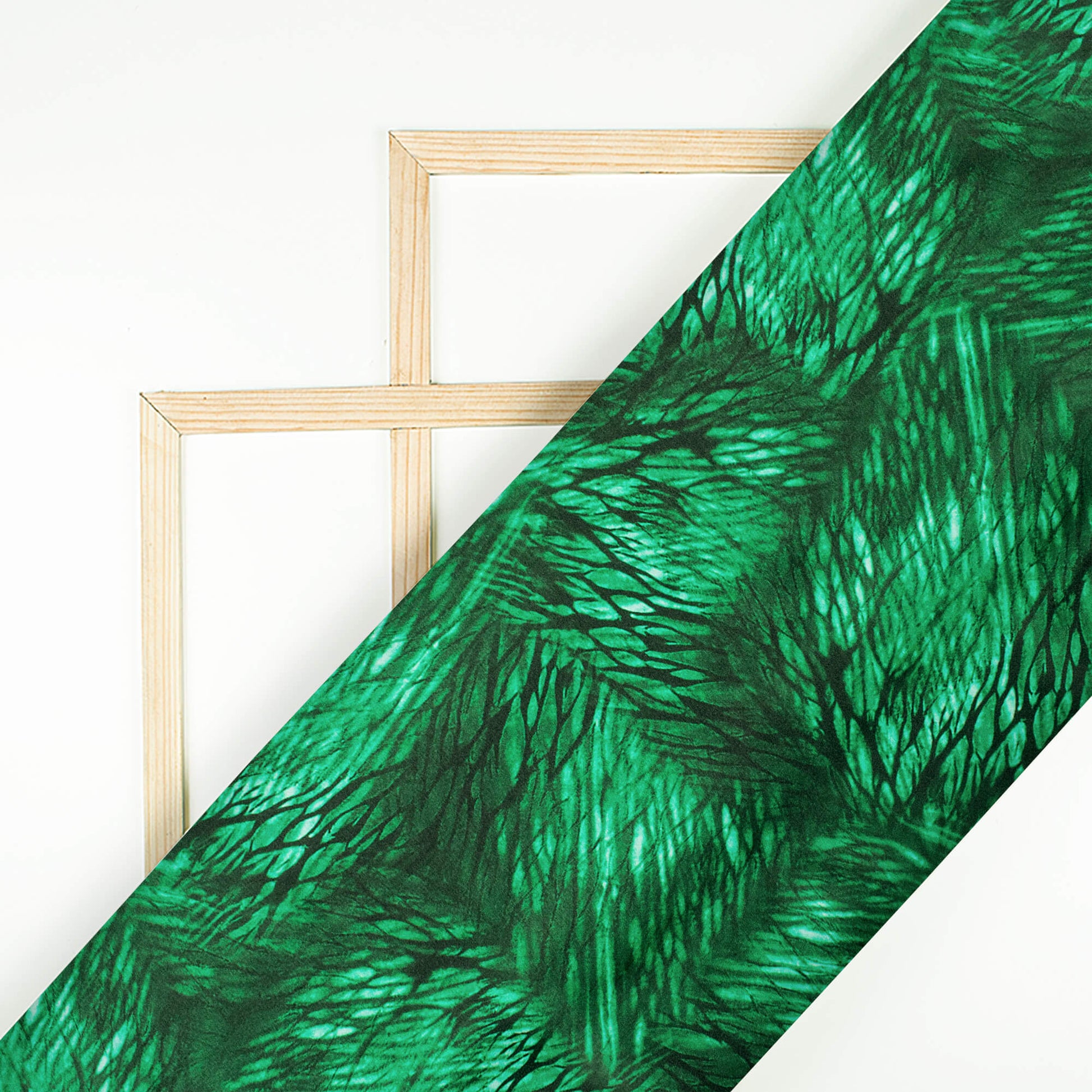 Bottle Green Abstract Pattern Digital Print Japan Satin Fabric