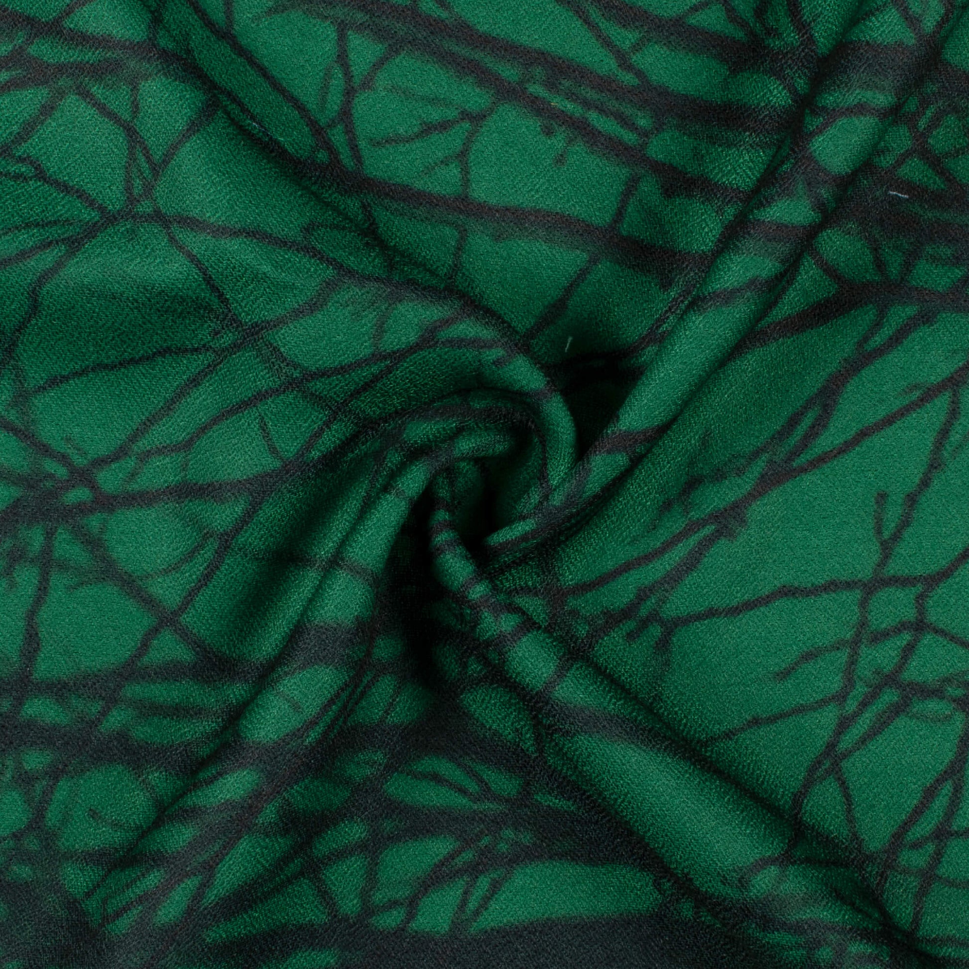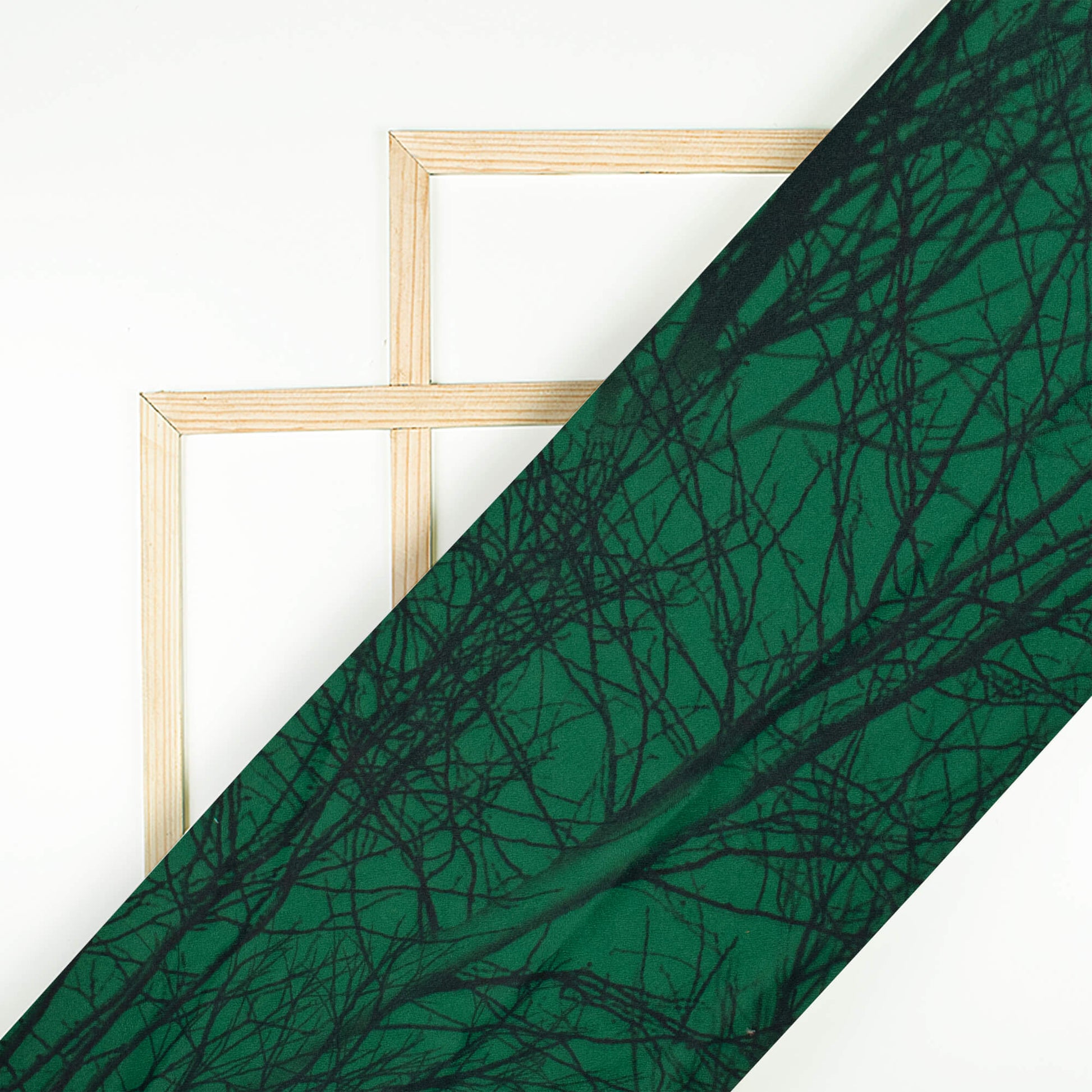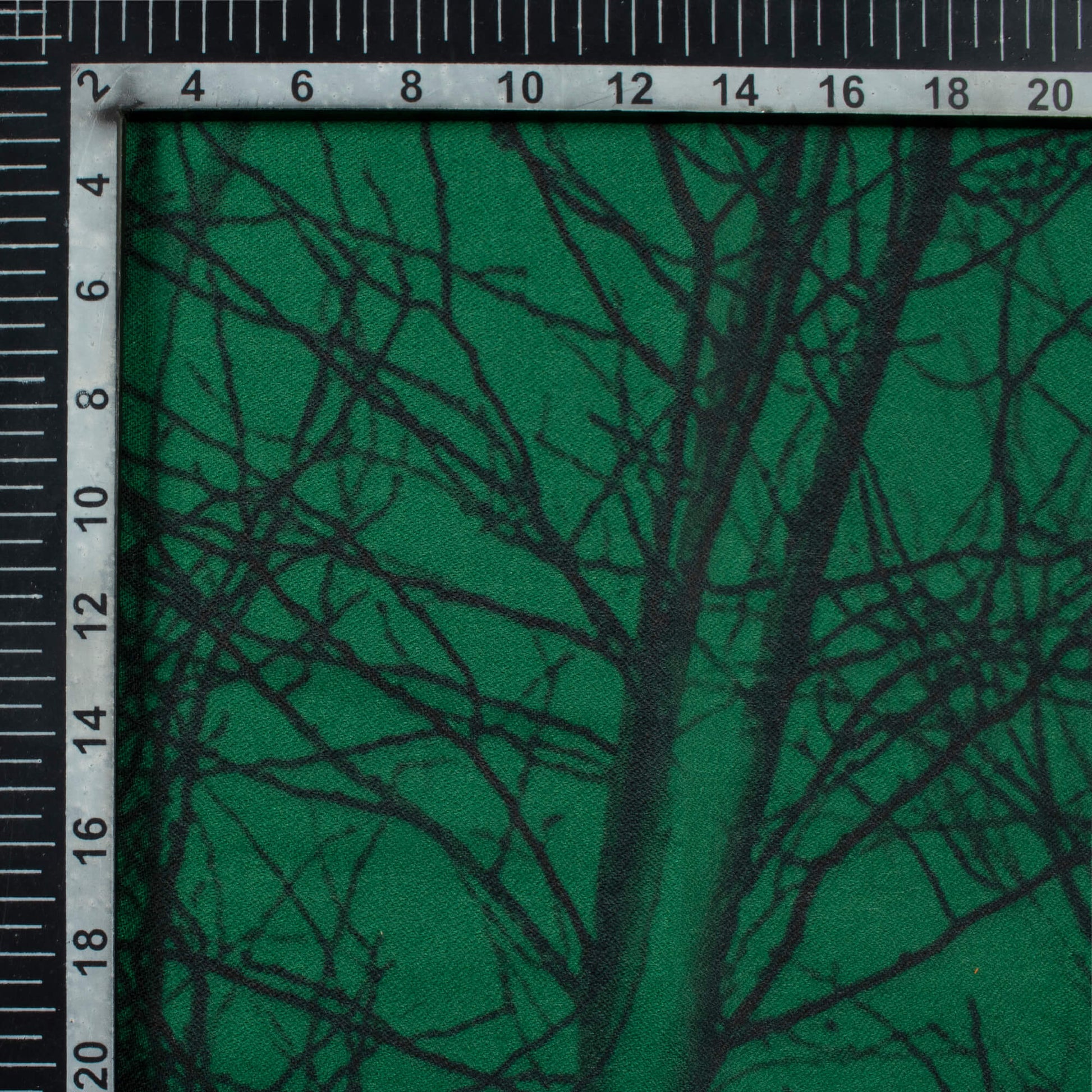 Bottle Green And Black Abstract Pattern Digital Print Moss Crepe Fabric