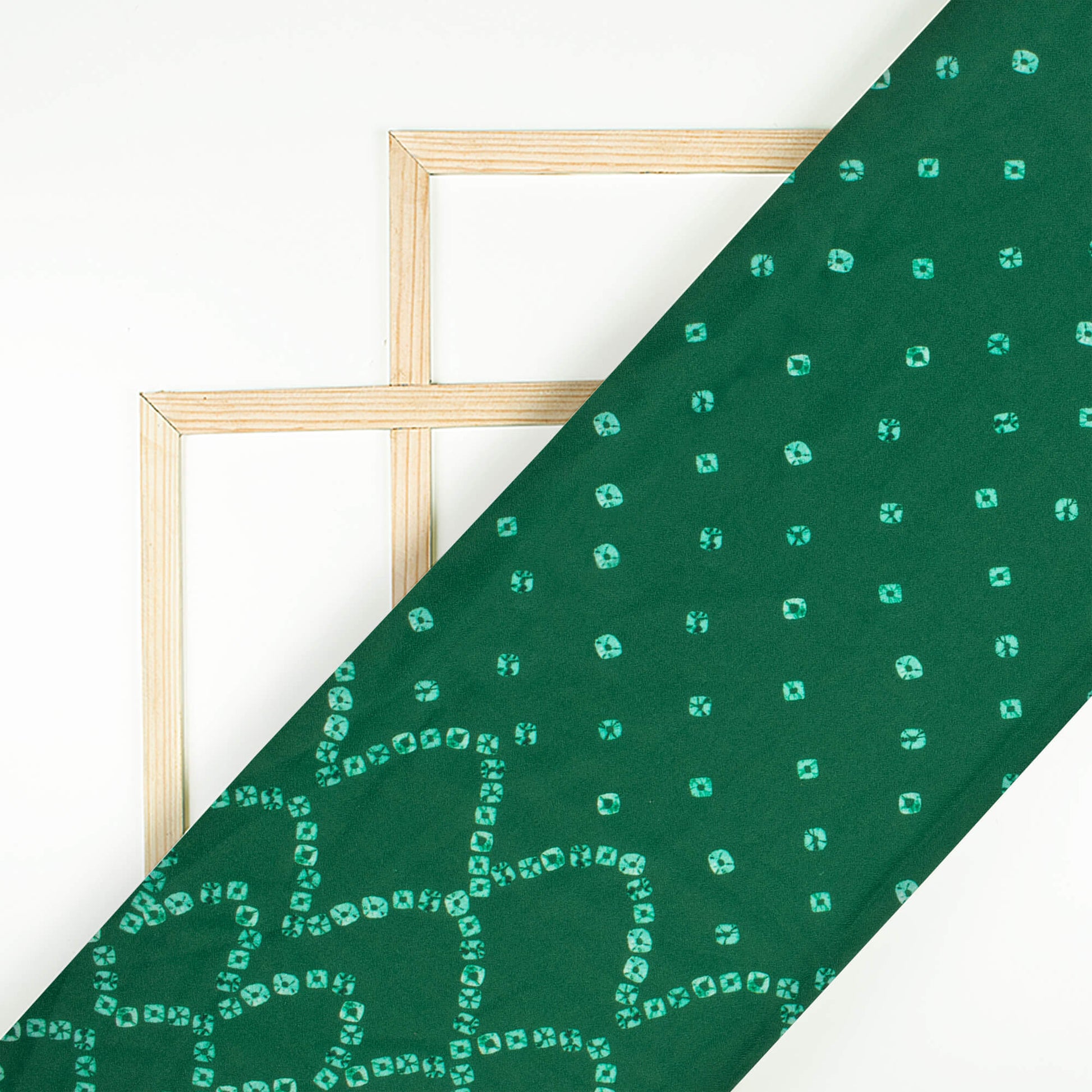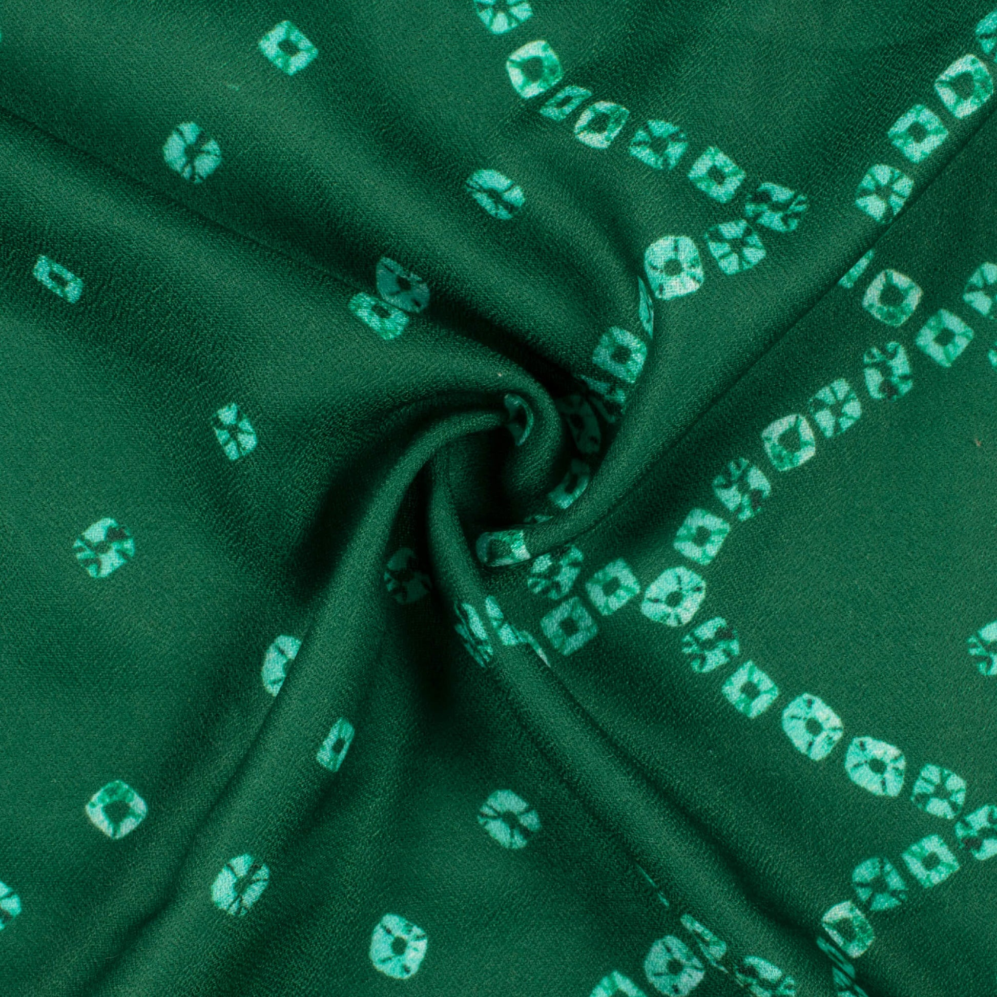 Bottle Green And White Bandhanii Pattern Digital Print Moss Crepe Fabric