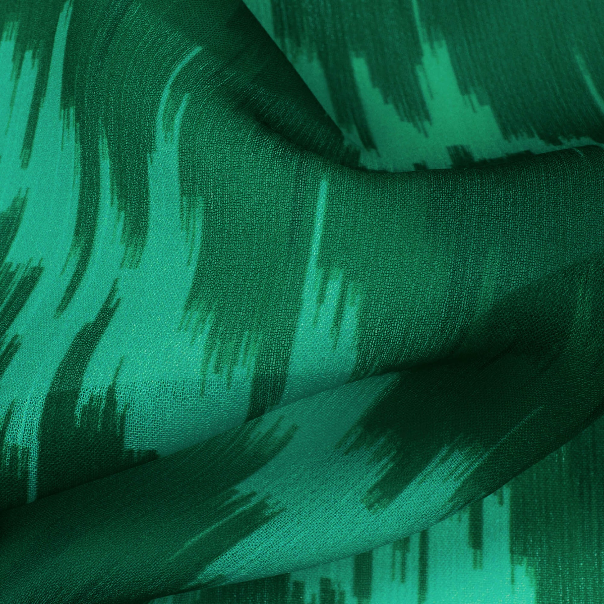 Bottle Green Chevron Pattern Digital Print Chiffon Fabric