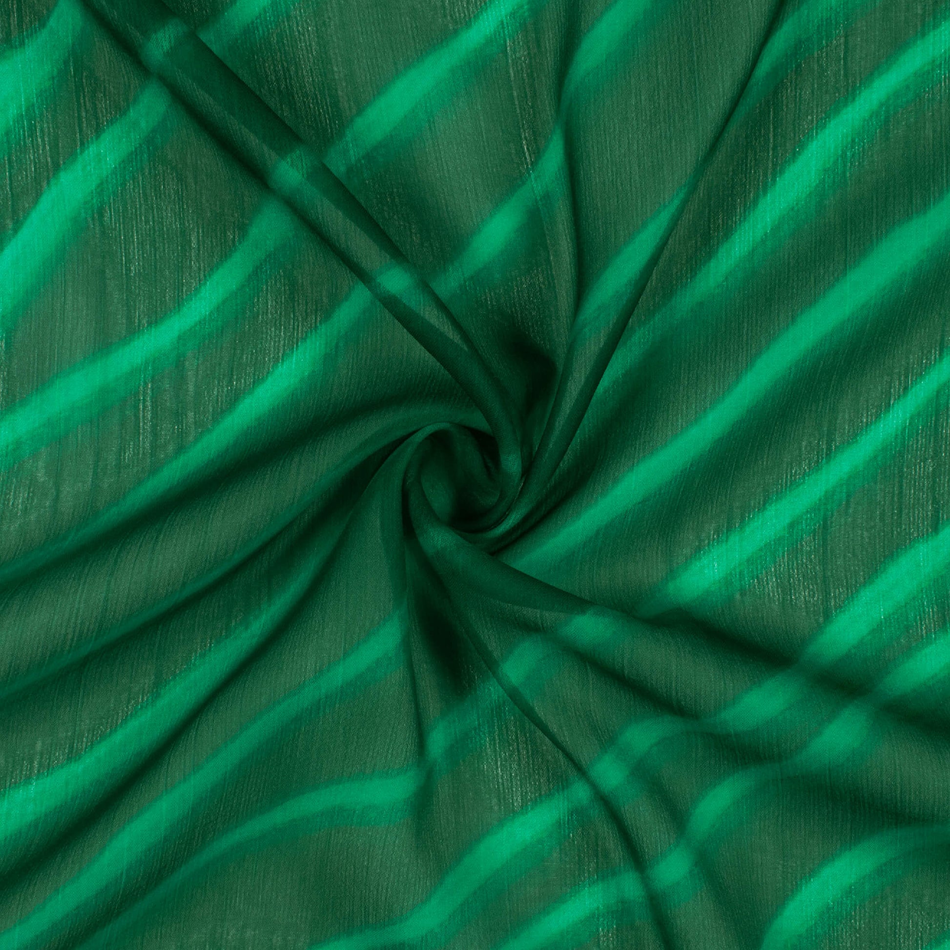 Bottle Green Leheriya Pattern Digital Print Chiffon Fabric