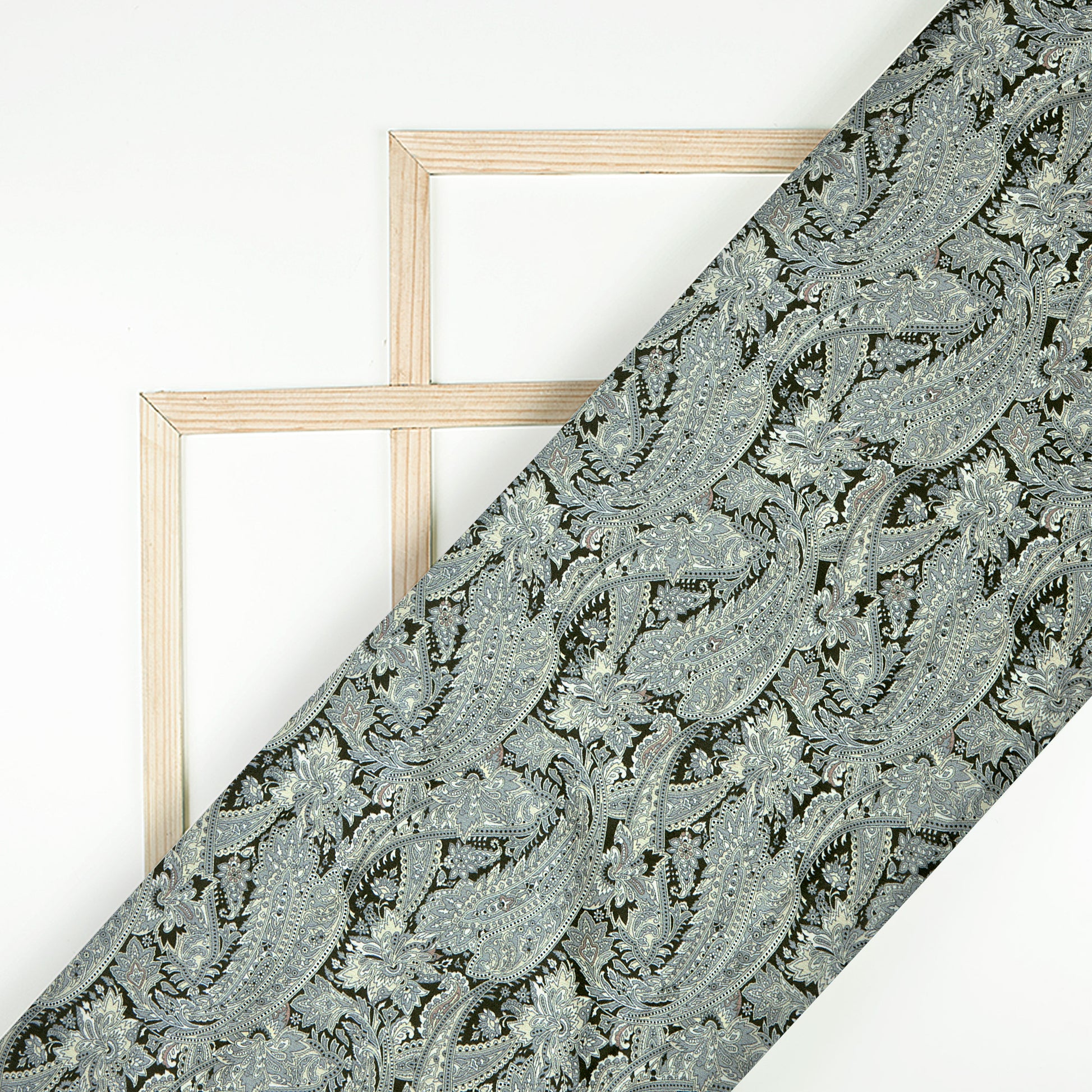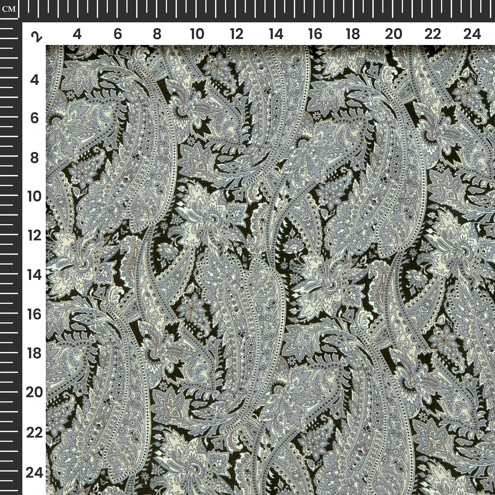 Gray Paisley Digital Print Chiffon Satin Fabric