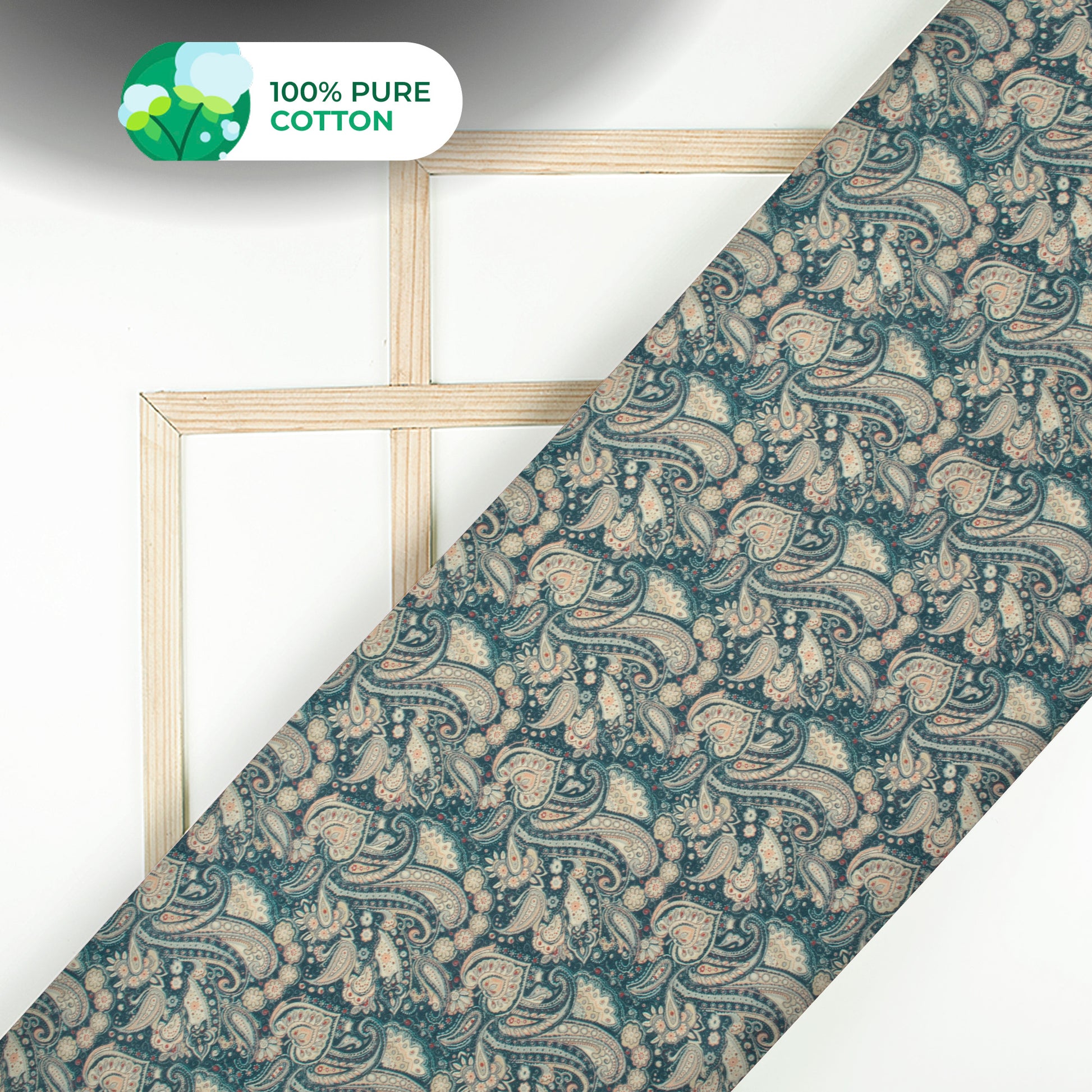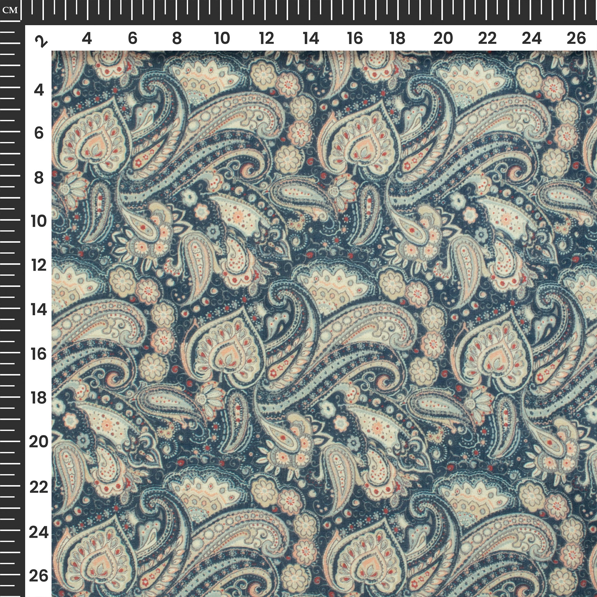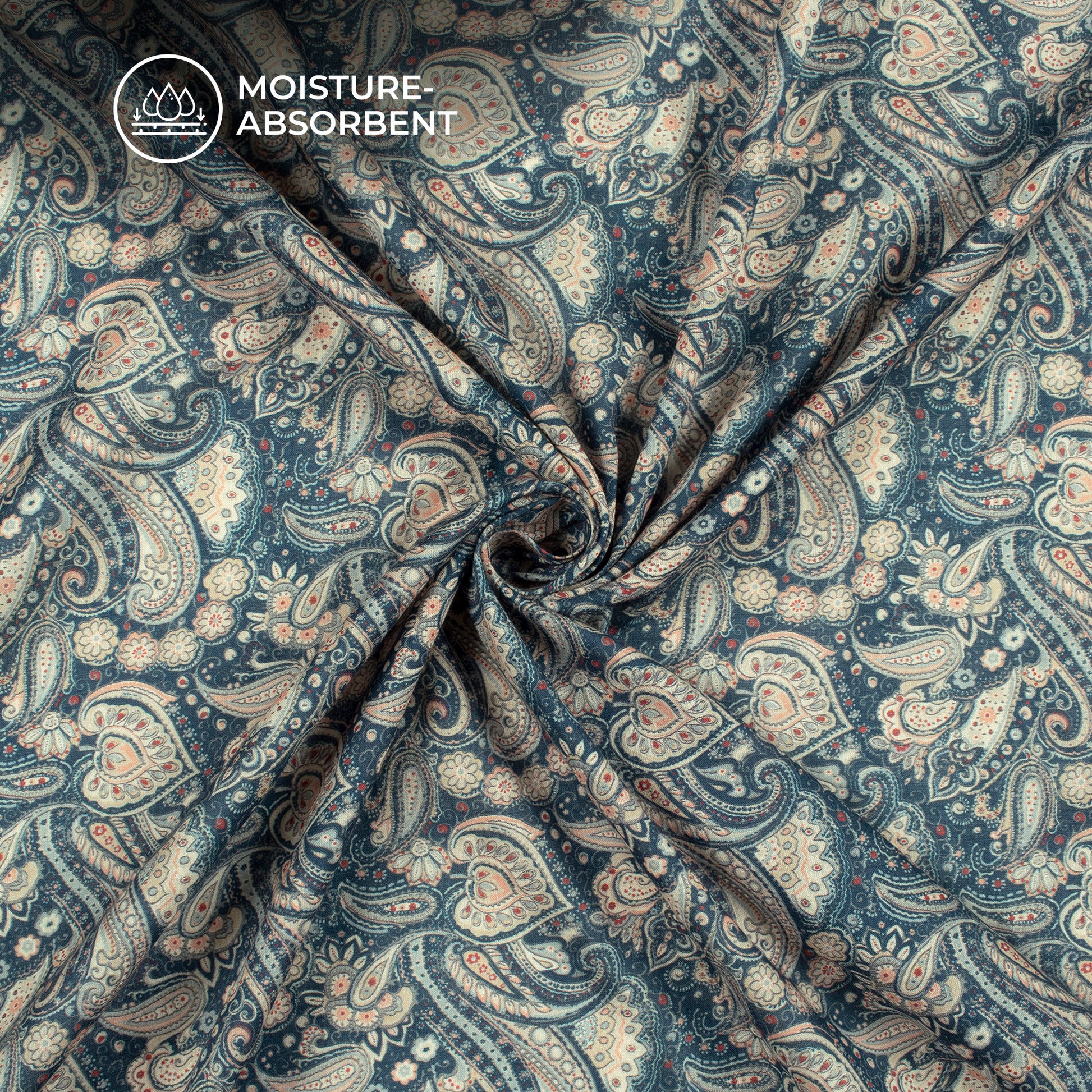 Denim Blue Paisley Digital Print Cotton Mulmul Fabric
