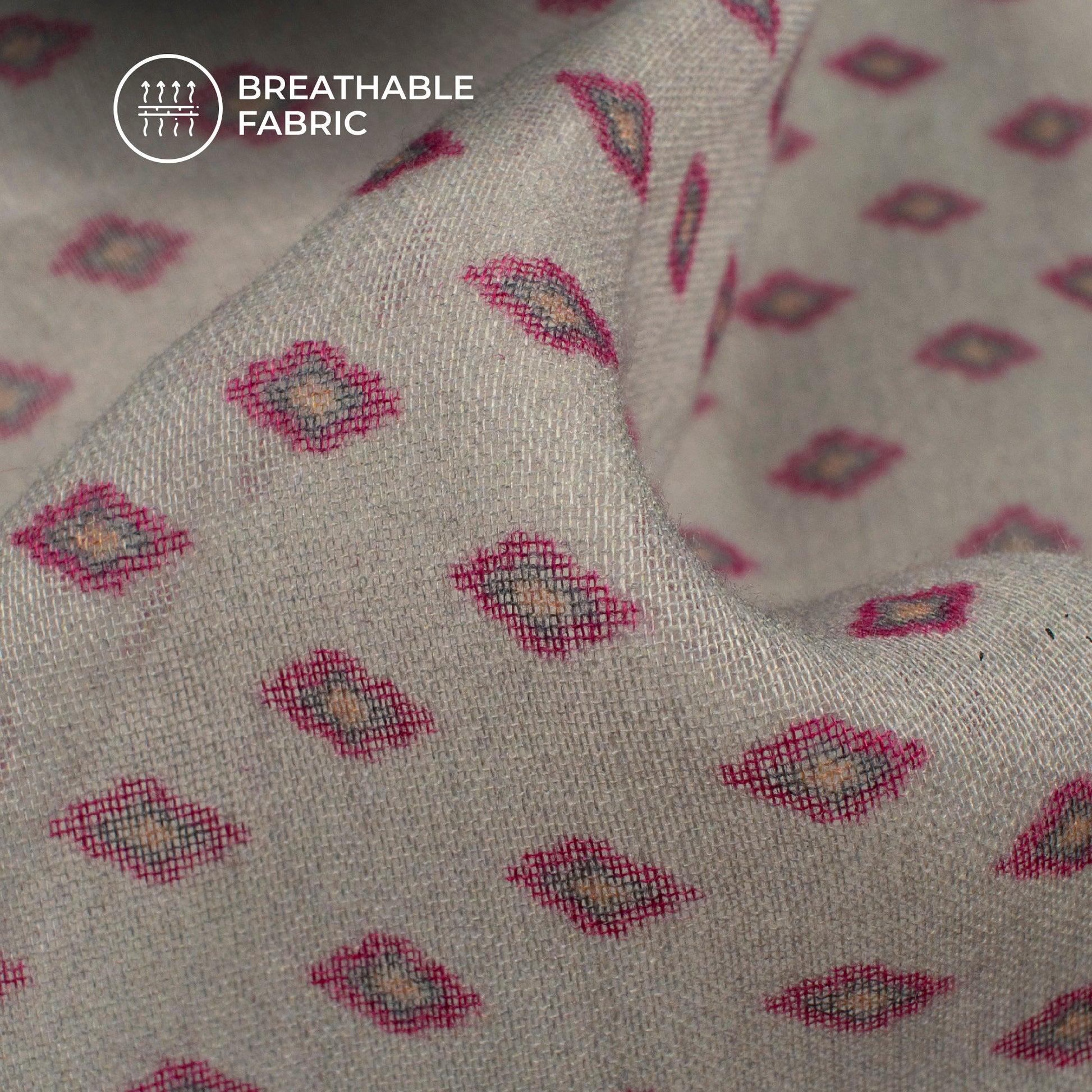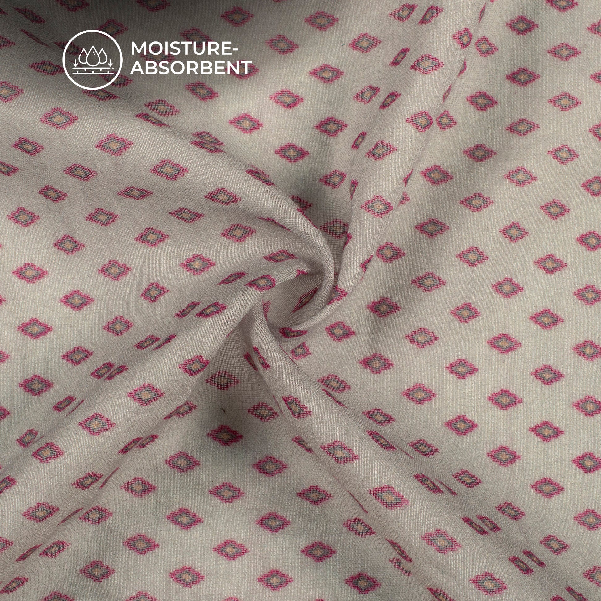 Dolphin Grey And Pink Geometric Booti Digital Print Pure Cotton Mulmul Fabric