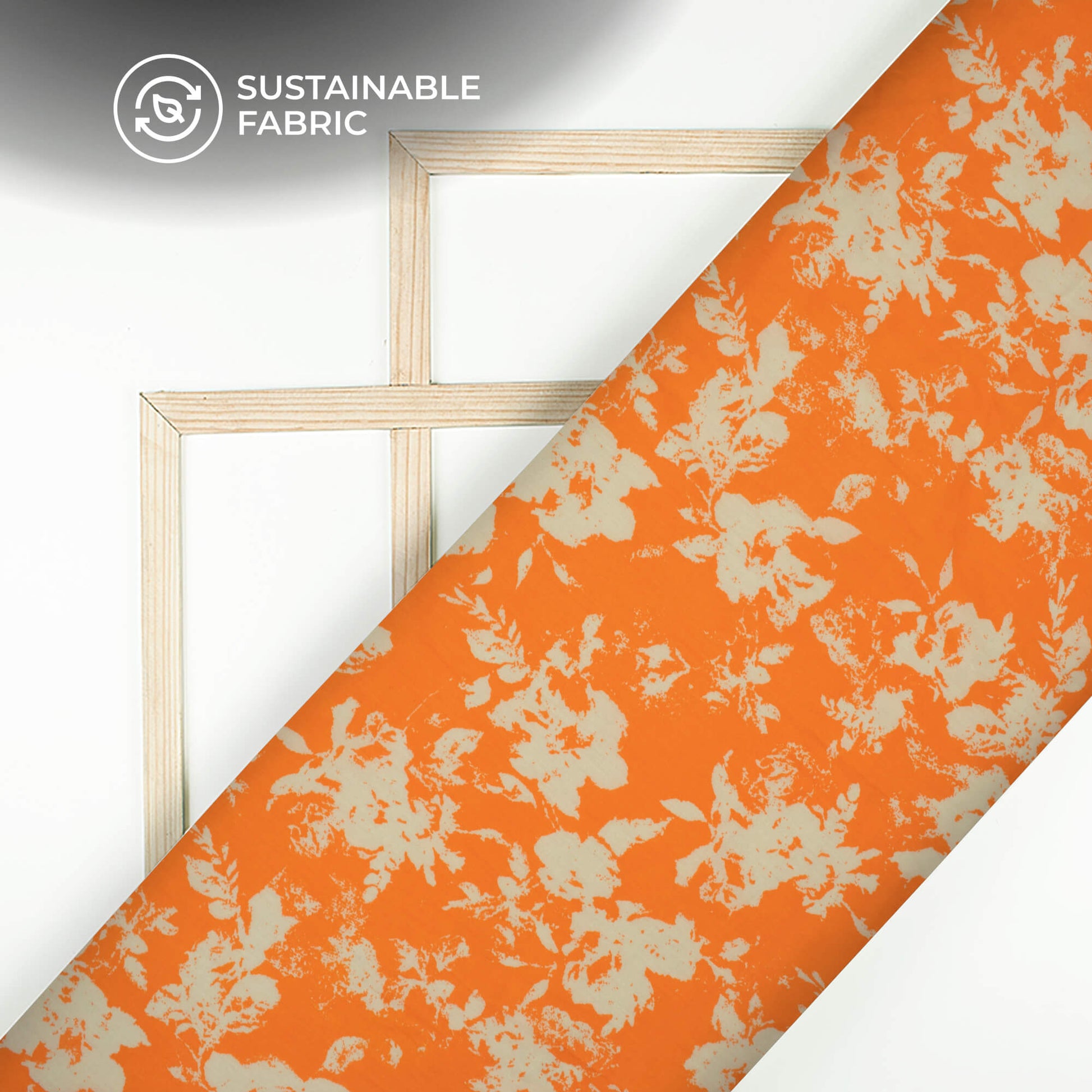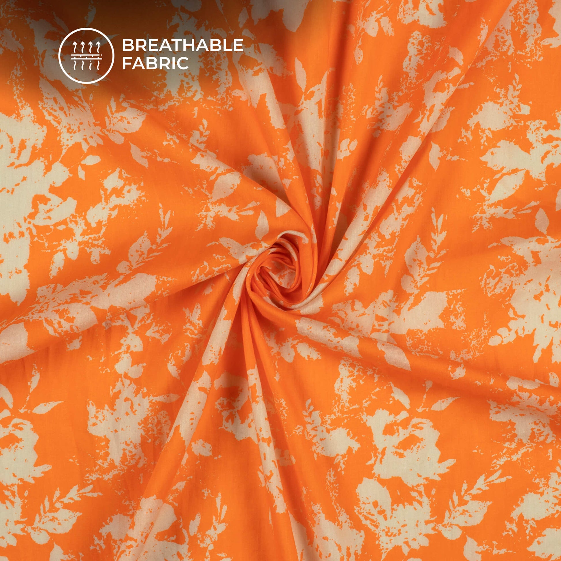 Tiger Orange Floral Digital Print Pure Cotton Mulmul Fabric
