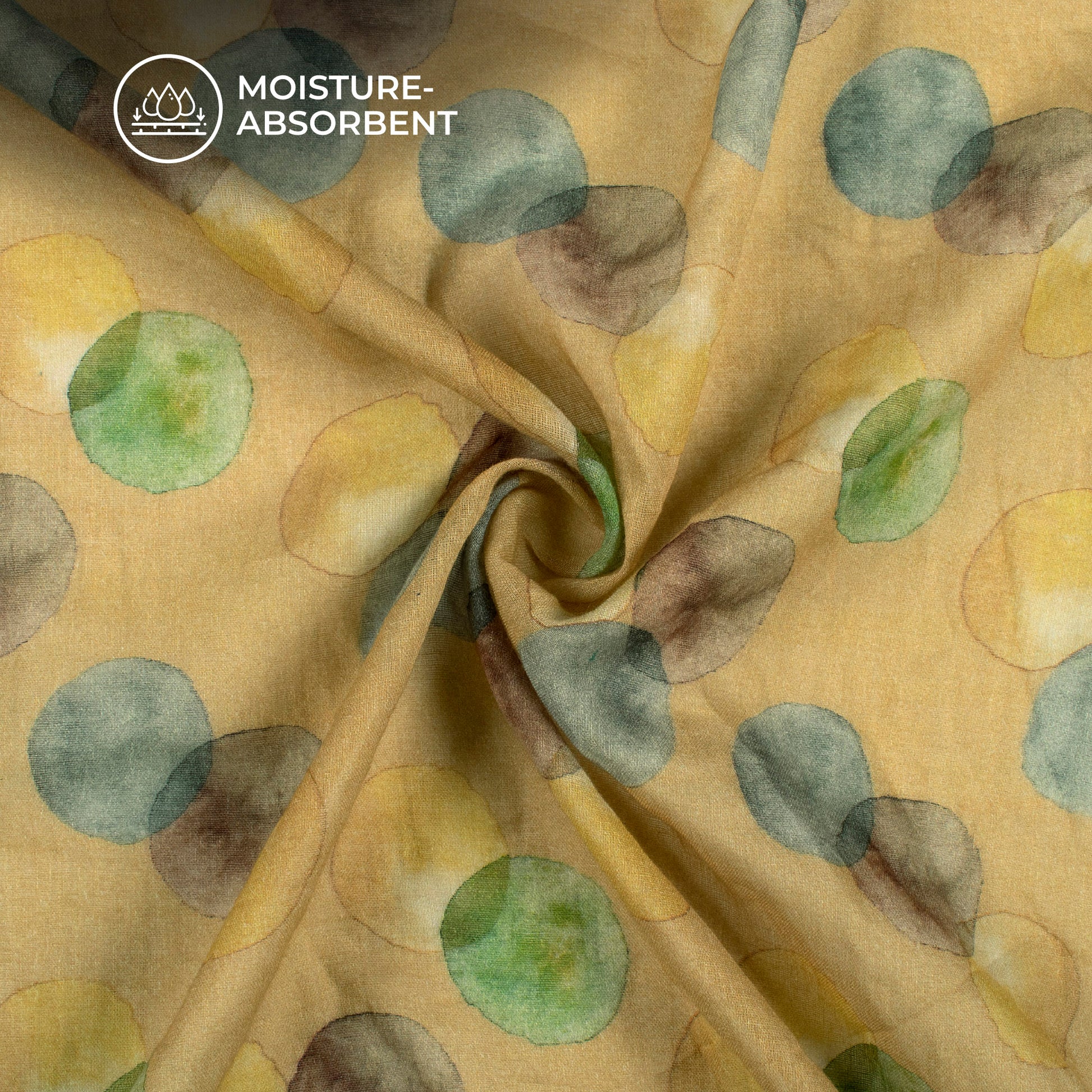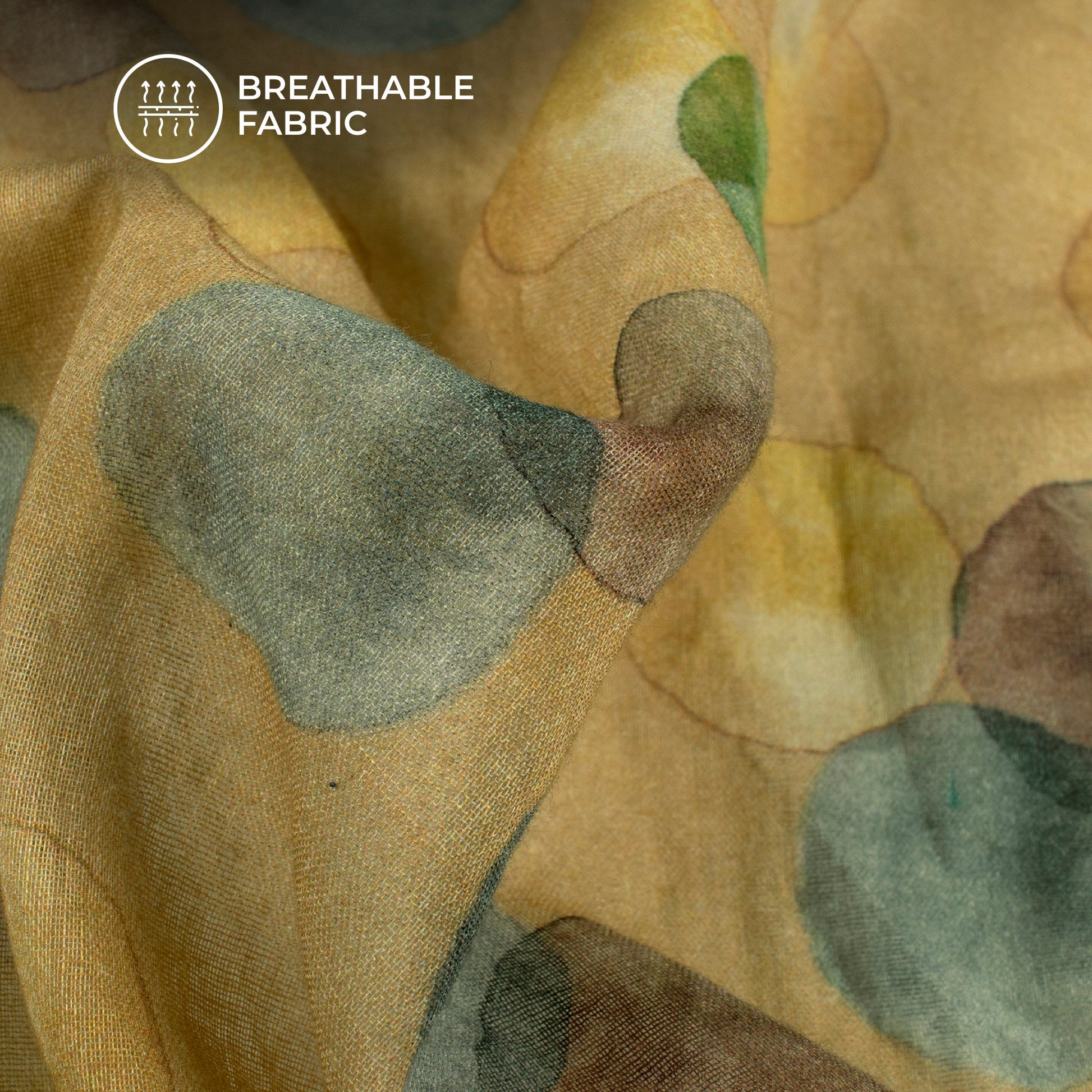 Trombone Yellow And Brown Quirky Digital Print Pure Cotton Mulmul Fabric
