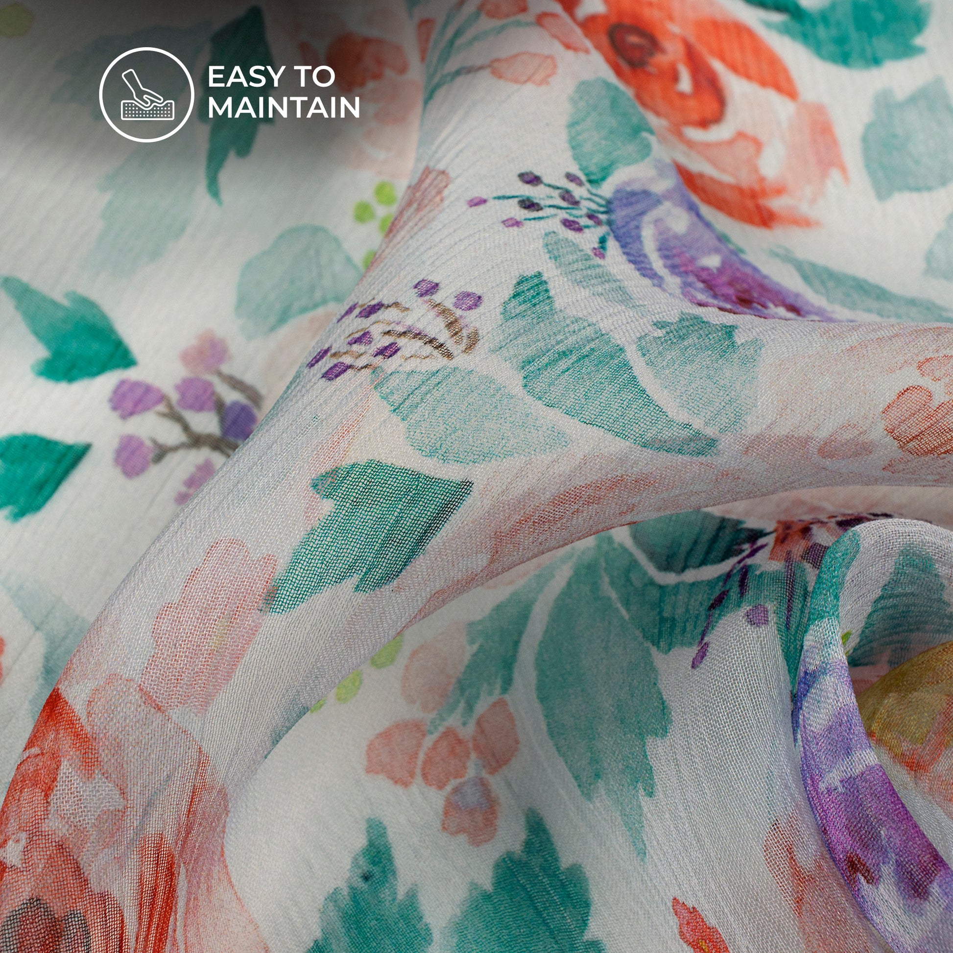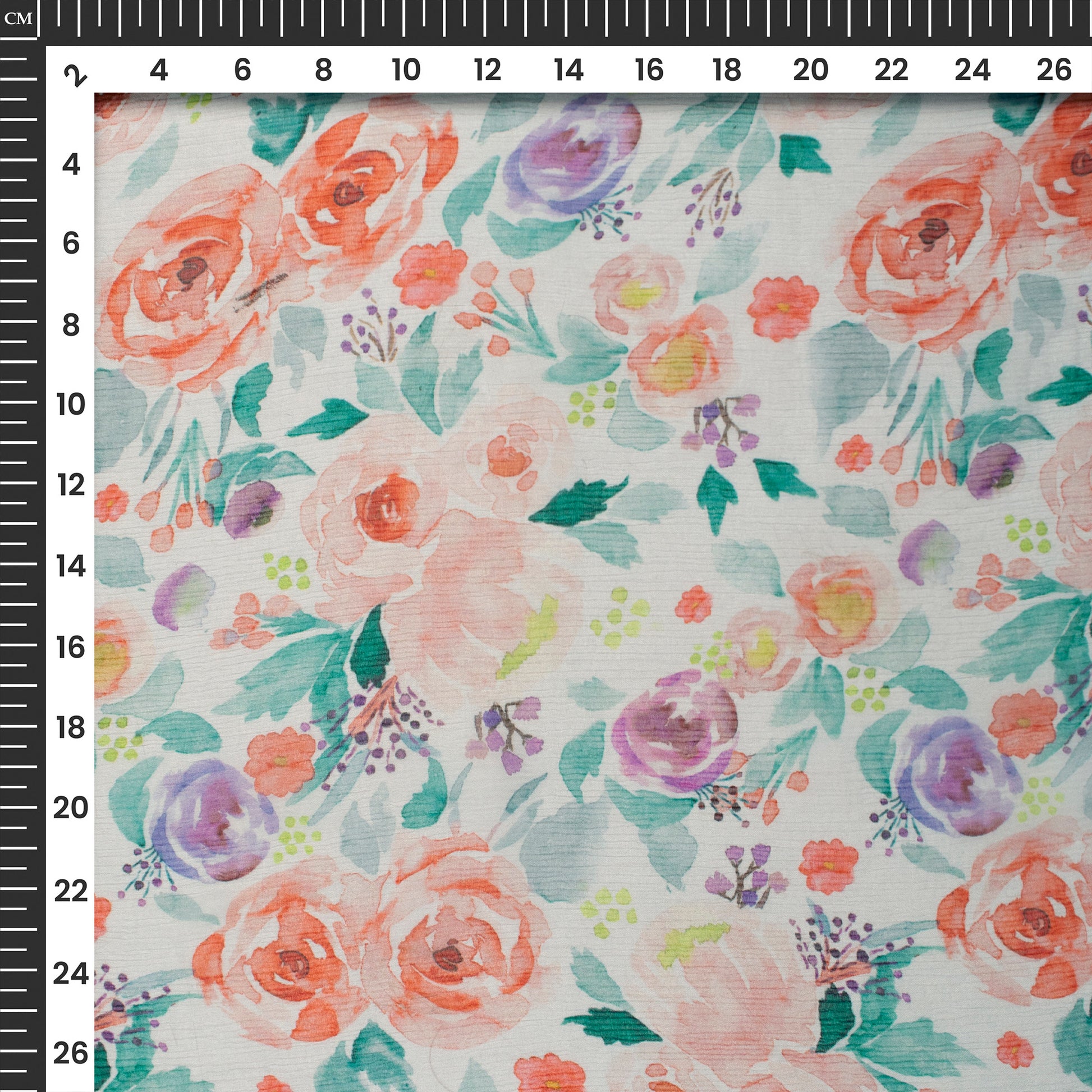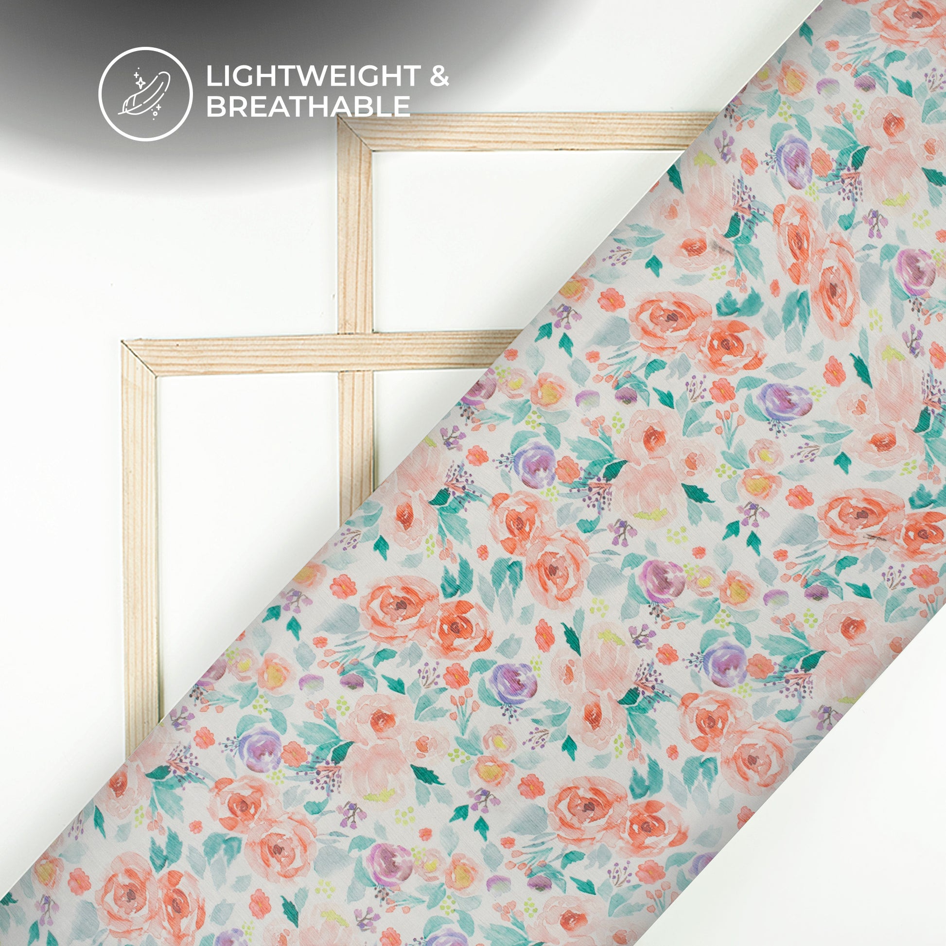 Vermillion orange Floral Digital Print Bemberg Chiffon Fabric