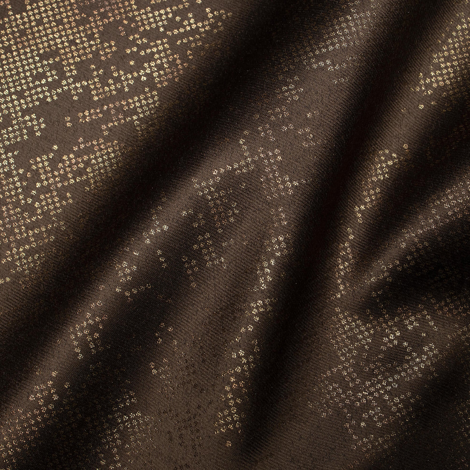 Spice Brown Golden Dots Geometric Pattern Premium Curtain Fabric (Width 54 Inches)