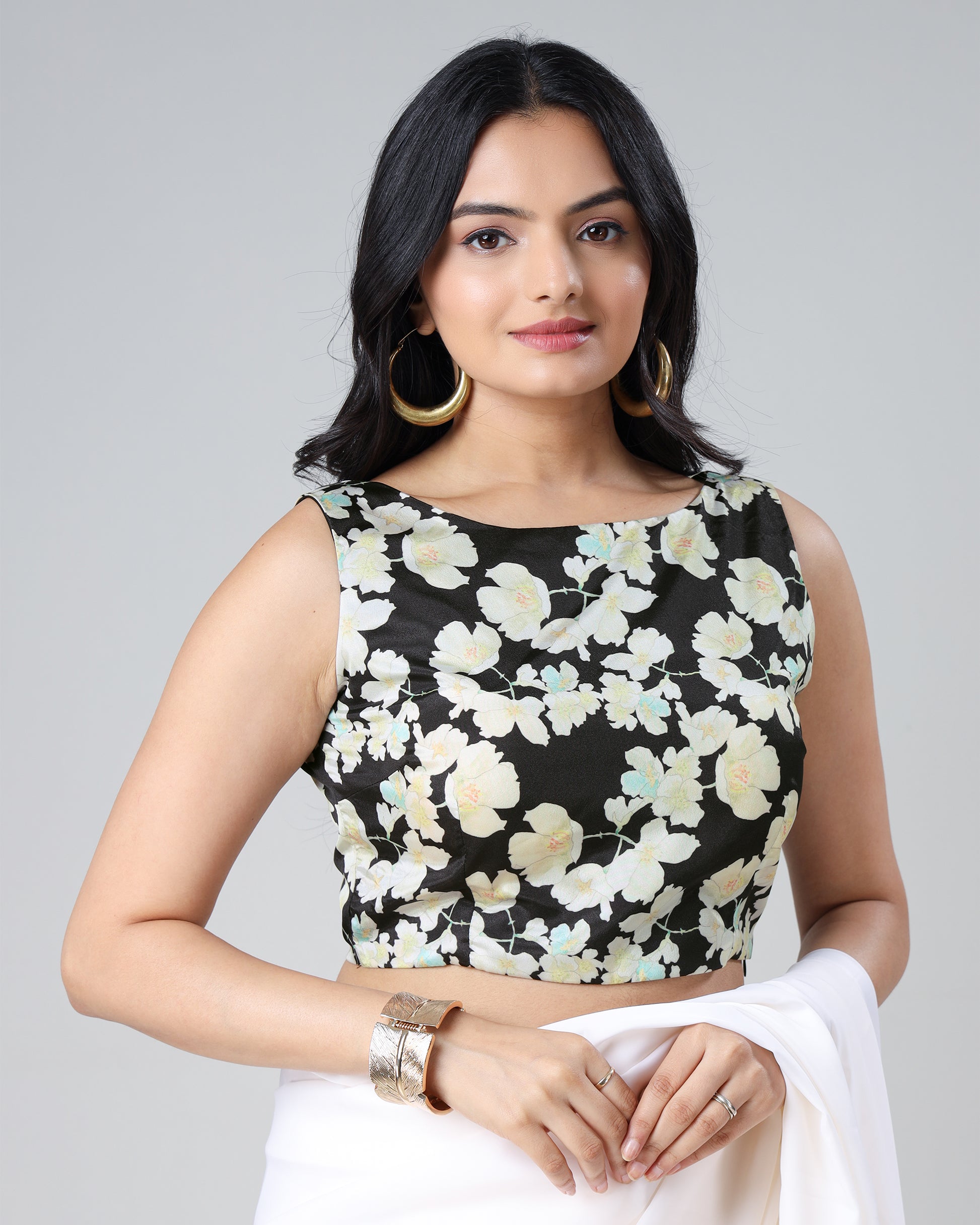 Elastic Ease Blouse: Black Floral Silk Blouse